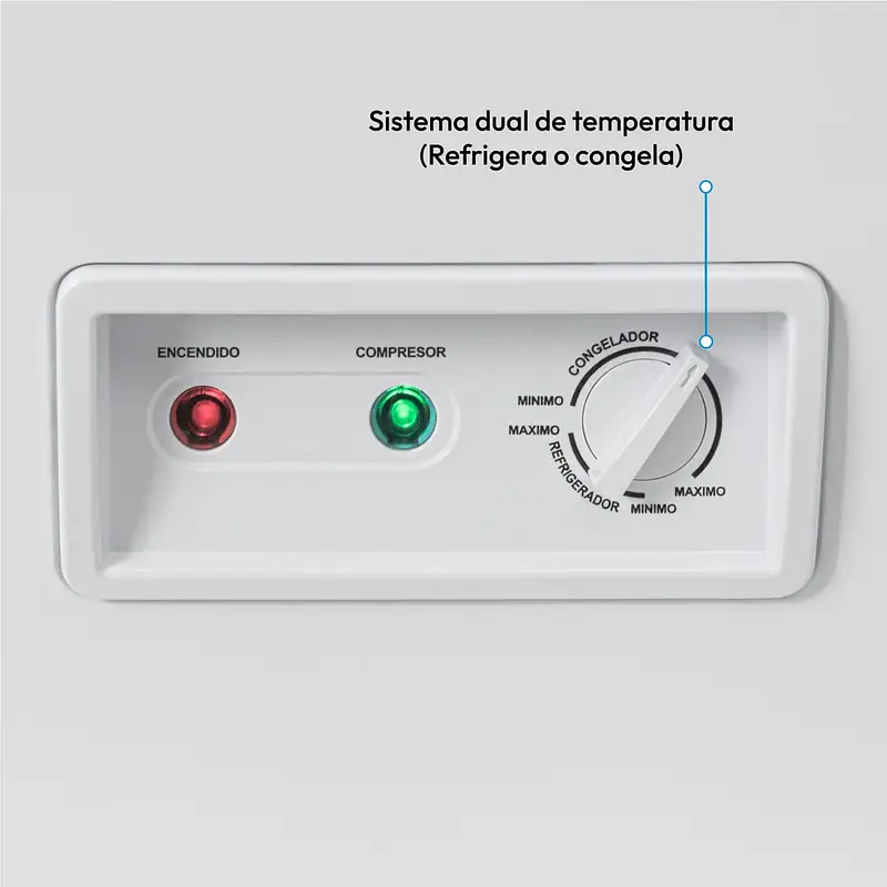 |  | Dimensiones: Espacio Inteligente  Este congelador está diseñado para maximizar el almacenamiento sin ocupar más espacio del necesario. Su formato horizontal permite distribuir los alimentos de forma eficiente, con zonas diferenciadas para frescura y congelamiento. Tú decides la temperatura ideal según tus necesidades, logrando una conservación personalizada y práctica. |