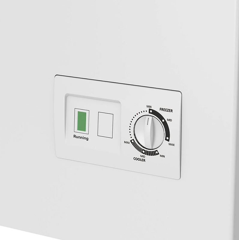 Función Dual Cooling, permite elegir temperatura para refrigerar o congelar, control mecánico exterior, luz LED interior, y canastilla deslizable.