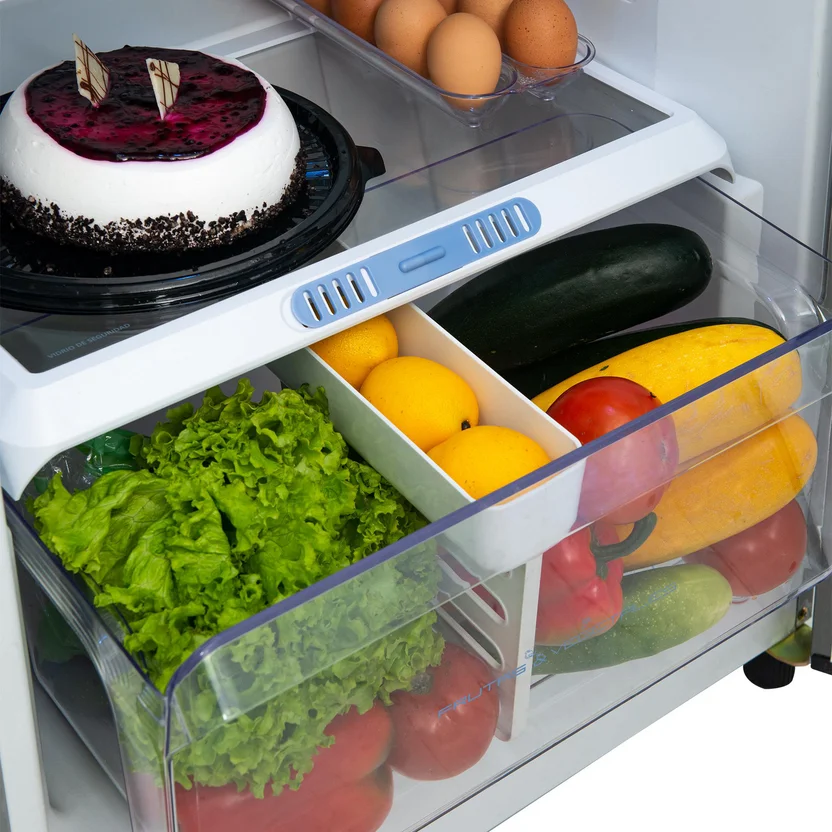 La Lúmina CR 317 está diseñada con espacios inteligentes que aprovechan al máximo su capacidad, permitiéndote guardar cómodamente desde productos frescos como frutas y verduras hasta comidas listas para servir, todo organizado de forma práctica y accesible.
